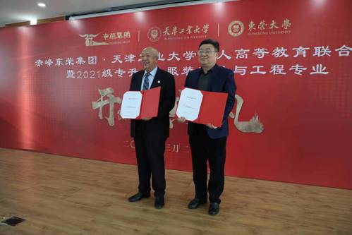 期间,我校继续教育学院院长刘栋与赤峰东荣集团董事长程旭东进行了联合办学协议的交接仪式。会后,我校继续教育学院成教办主任陆曦为2021级新生作了入学教育。