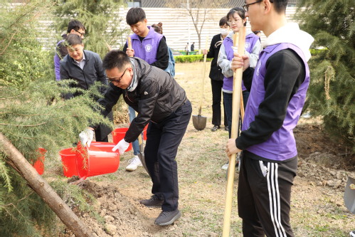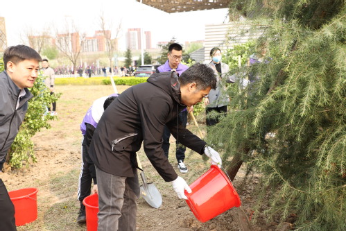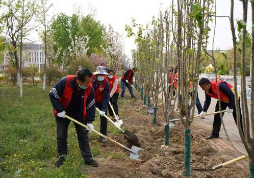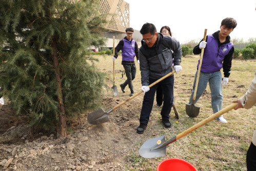 启动仪式结束后,师生们将在一个月内围绕学校东北门、北环路、东环路和南环路等点位,陆续种植雪松、西府海棠、金枝槐、红花碧桃、樱花、大叶黄杨、红叶石楠、北美海棠、紫藤等植物共计1950株。植树现场一片繁忙,参加劳动的师生们挥锹铲土、整地挖坑、栽种树苗、培土围堰……种下的不仅是树苗,更是生态文明的希望。