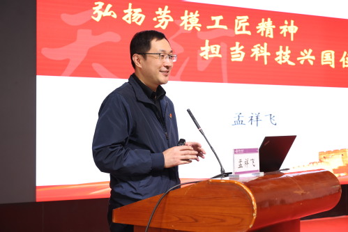 签约仪式后,与会人员共同聆听了党的十九大代表、国家超级计算天津中心主任助理、“最美奋斗者”孟祥飞的专题报告:《弘扬劳模工匠精神 担当科技兴国使命》。孟祥飞精益求精的创新精神、忘我工作的敬业精神、严谨求实的科学精神和协作传承的团队精神让在场的师生深受感动,备受鼓舞。听了报告后,学生们进一步认识到当今世界正经历百年未有之大变局,我国发展面临的国内外环境发生深刻复杂变化,我国“十四五”时期以及更长时期的发展对加快科技创新提出了更为迫切的要求,同学们表示自己生逢其时,应有作为,定当不懈努力,不负韶华。