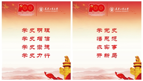 强化宣传引导,营造浓厚氛围。充分发挥校园媒体平台、宣传橱窗等阵地作用。做好党史学习教育宣传报道,在校园新闻网、官方微信、官方微博、抖音等平台开设“党史学习教育”“庆祝中国共产党成立100周年”专题专栏,与建党百年主题宣传相结合,围绕爱党爱国爱社会主义主题,厚植红色文化,强化宣传育人。自3月份以来,在天津日报、天津电视台、天津广播、天津教育报等社会媒体平台发布学校党史学习教育主题的报道30余篇。学校先后设计、制作党史学习教育主题展板、主题桁架、主题海报,悬挂、摆放于校园显著位置。各二级单位的35块LED电子显示屏持续滚动播放党史学习教育主题宣传标语。同时,学校各基层党组织充分利用本单位宣传载体,线上线下齐发力,营造浓厚的学习氛围。