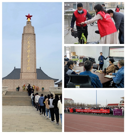 做细特色活动,激发爱党爱国情怀。纺织科学与工程学院开展“师生共读一本书”活动,通过个人自学和支部集体学习讨论相结合方式,引导广大师生深入学习党史,在党史中汲取智慧和力量。材料科学与工程学院开展了“百名党员做实事”系列志愿服务活动,机械工程学院、法学院通过下社区进基层、助力疫情防控等多种志愿服务形式,结合学院具体工作实际,引导师生党员用行动缅怀历史、追忆初心、践行使命。化学工程与技术学院、电气与电子工程学院组织师生党员前往西青区辛口镇第六埠村开展“重走长征路”红色文化体验式党员集中教育活动,激励广大师生传承红色基因、赓续红色力量。控制科学与工程学院依托学院“初心宣讲团”开展“寻找足迹”主题党课活动。计算机科学与技术学院、艺术学院组织开展“学党史 强信念 跟党走——喜迎建党100周年”主题升旗仪式。数学科学学院、经济与管理学院积极开展“我为群众办实事”实践活动,数学科学学院依托每周四下午院领导接待日制度,畅通与群众的沟通渠道,积极推动学院录播教室建设,主动作为、着眼长效、服务师生。物理科学与技术学院充分利用新媒体平台,牢牢把握网络思想政治教育新阵地,线上线下相结合,加强宣传引导,营造党史学习教育浓厚氛围。经济与管理学院以福清医疗集团总裁参加学校研究生毕业典礼为契机,与该集团签订“环球官方(中国)总部经济与管理学院创新创业实践基地”合作协议,积极推动产学研合作和学生实习就业。马克思主义学院积极探索如何发挥好思政课程主渠道作用,通过课堂教学、现场体验教学、融媒体教学等喜闻乐见的形式,将党史学习教育融入思政课程,开展党史学习进思政课堂教育活动。学校工会与体育工作部联合开展体育教育服务师生、服务教职工子女志愿活动,为参加体育中考的40余名教职工子女开展体育中考技能培训。