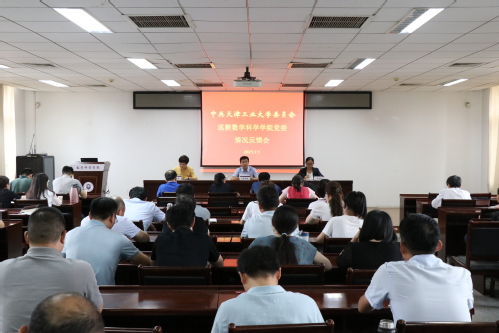 2021年7月1日,校党委巡察组分别向数学科学学院党委、物理科学与技术学院党委反馈了巡察情况。校党委副书记、巡察工作领导小组副组长陈泮成出席反馈会。巡察组全体成员、巡察工作办公室工作人员,两个学院全体教师和学生党员代表参加会议。