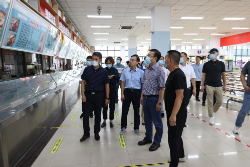 随后,校长夏长亮院士一行来到东苑第一食堂,查看了就餐环境、疫情防控措施、卫生条件和饭菜种类等。他对工作人员提出要求,迎新饮食服务工作要符合疫情防控要求,确保新生用餐卫生健康,提供满意的饮食服务;用心用情做好“特价菜”供应,价格可以“特价”但质量不能“特价”;一卡通机器升级后要保证刷卡速度快捷,减少用餐高峰期的排队等待时间。