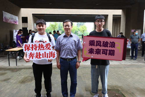 下午,校长夏长亮院士一行来到励志广场迎新点检查工作,看望前来报到的新生并慰问参与迎新工作的师生和志愿者。每到一个学院迎新点位,校长夏长亮院士都详细询问了新生报到情况,并对工作人员的辛勤付出表达真诚的感谢。同学们争相邀请校领导合影留念,现场不时传出阵阵欢笑声。