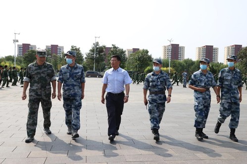 9月14日,胡英江副书记一行到望星体育场、励志广场等军训场地对教官及学生进行慰问。他细致地询问训练进度,向辛苦承训的教官表示诚挚感谢,并热心叮嘱同学们天气变化较大,在坚持保质保量完成训练任务的基础上要注意多喝水,健康饮食,保持身体健康。他希望同学们以此次军训为契机,加强体育锻炼,不断提高身体素质,为今后更好地学习生活打下坚实基础。