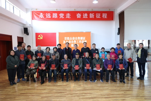 张玉波副校长、寇士军处长、黄洁主任为首批出售的公房权利人颁发了不动产权证书,并合影留念。
