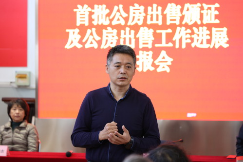 2021年10月21日,我校首批公房出售颁证及公房出售工作进展通报会在河东校区离退办召开。副校长张玉波出席并讲话。离退办主任黄洁、房产管理处(基建处)处长寇士军、房管团队全体工作人员、20位教工住宅权利人及待发证教工代表等参会。会议由寇士军处长主持。