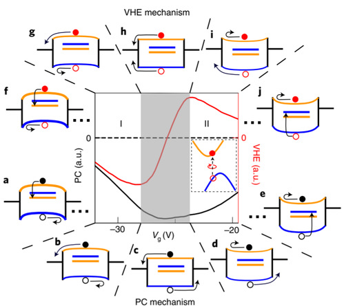 基于不同能谷的电子具有相反的贝里曲率而产生的谷霍尔效应是实现谷电子器件的重要途径之一。然而,已有的关于二维半导体材料谷霍尔效应的报道或受限于器件复杂微结构的加工要求,亦或受限于低温极端条件,这些都极大程度上限制了谷电子器件的实用化发展。鉴于此,马惠老师与高炜博教授、熊启华教授合作,通过设计过渡金属硫族化合物异质结构,利用圆偏振光操控不同能谷中的电子,实现了室温下工作的双极型谷电子晶体管,与此同时,他们还成功地利用栅压实现了谷霍尔电压的幅度和极性多维度调控。这一成果对于提高谷电子晶体管的开关比,实现更加复杂的谷电子逻辑电路具有十分重要的意义,进一步推进了谷电子器件的实用化进程。