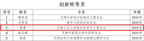 近日,天津市教育发展基金会公布了2021年天津市大学生创新创业奖学金获奖名单,我校纺织科学与工程学院2019级博士生高鲁获得创新奖学金特等奖,数学科学学院信息与计算科学专业2014级本科生李鼎辰获得创业奖学金特等奖。程金雪、齐鲁豫、温滨正3名同学获得创新奖学金优秀奖,宋兴辉、胡宇辉、朵永超3名同学获得创业奖学金优秀奖。