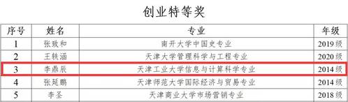 喜报!我校学子获得2021年天津市大学生创新创业奖学金特等奖