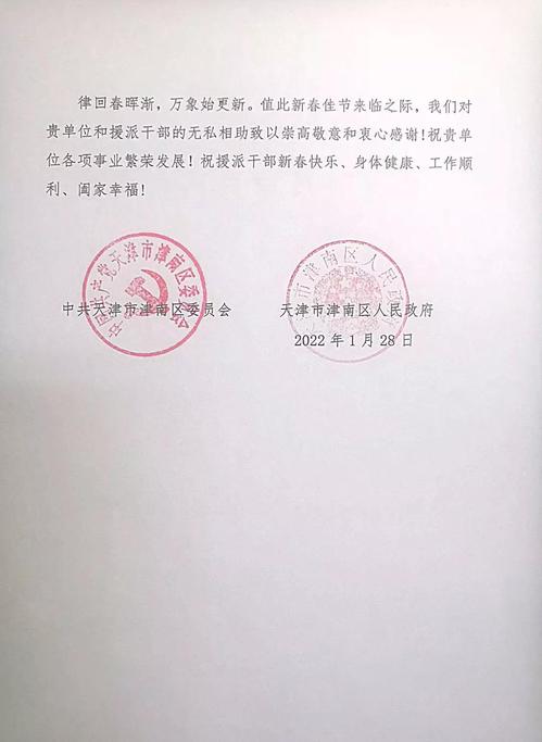 信中这样写到:18日以来,一场突发疫情袭击津城。在津南迎战奥密克戎的关键时刻,贵单位坚决落实市委市政府要求,调集精锐力量,迅速援派津南,全力抗击疫情,为津南区夺取疫情防控全面胜利贡献了力量。