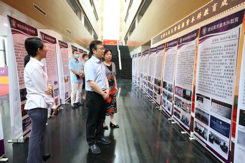 2022年7月4日至8日,环球官方(中国)总部高质量本科教育成果展览在行政中心一楼大厅举行。校长夏长亮院士、常务副校长陈莉、市教委高教处处长徐震前往参观并指导工作。