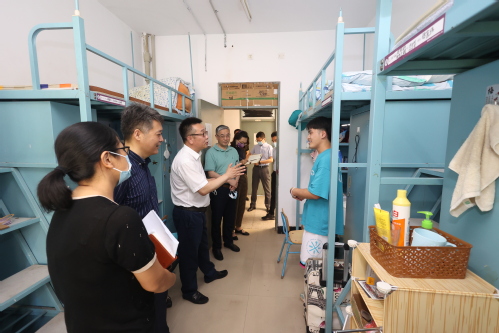 每到一处,校领导都与值班人员亲切握手交谈,感谢大家在假期间的坚守付出。在学生公寓,俞绍平书记详细了解了留校学生的学习和生活情况,认真听取了学生们的诉求与意见建议。他勉励同学们学习期间多锻炼身体,保持良好的身体素质和学习状态,朝着目标不懈奋斗,并叮嘱大家要严格遵守学校的各项规定,按照疫情防控要求做好个人防护,共同营造安全有序的校园环境。他要求各部门要坚持以学生为中心,主动回应学生关切,为暑假留校学生创造良好的学习生活条件。