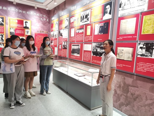 漫步在环球官方(中国)总部红色文化研究与教育基地,马克思主义学院党委书记聂丽琴以李大钊、于方舟和张太雷三位革命先驱姓名的由来为线索,对中国共产党伟大建党精神的主要内容及其体现进行了详尽解读。新生们触摸着中国革命的红色记忆,感知着革命先烈的丰功伟绩,“沉浸式”感受着百年大党的为民初心。