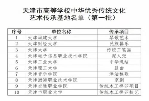 为贯彻落实市委办公厅、市政府办公厅《天津市全面加强和改进新时代学校美育工作的若干措施》精神,切实将中华优秀传统文化全方位融入学校美育全过程,2022年市教委在高校美育“互学互看”中开展了中华优秀传统文化艺术传承基地创建活动。经高校自主申报,市教委组织专家组评审,确定10所高校为第一批天津市高等学校中华优秀传统文化艺术传承基地,我校博雅书院“中华绳结”项目成功入选。