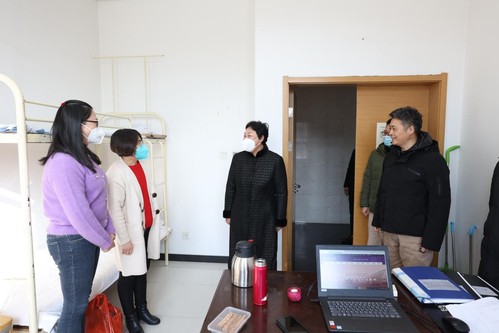 沈江书记一行先后走访了学校值班室、消防站、兰缘食堂、A区设备站、北苑留学生公寓等地。每到一处,校领导都与值班人员亲切握手交谈,详细了解节日期间工作安排、应急值守等情况,并送上节日的问候,对大家舍小家、顾大家,坚守工作岗位的奉献精神表示感谢。