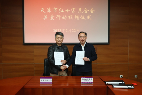 2023年2月22日下午,天津市红十字基金会秘书长于平水一行到我校开展关爱青年成长公益活动,向我校捐赠新型冠状病毒(2019-nCoV)抗原检测试剂盒,共计10080支。捐赠签约仪式在我校会议中心第四会议室举行,副校长张玉波出席。