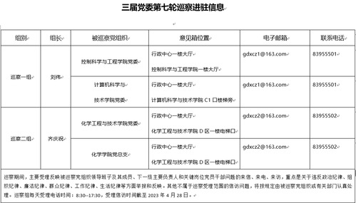 近日,我校分别召开巡察工作动员部署会和巡察进驻动员会,启动三届党委第七轮巡察,对化学工程与技术学院党委、化学学院党总支、控制科学与工程学院党委、计算机科学与技术学院党委开展常规巡察。