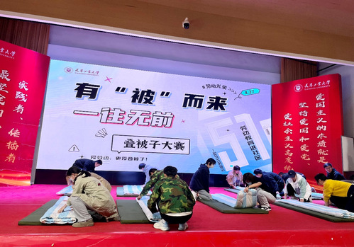 426日,党委学工部举办了“有‘被’而来,一往无前”叠被子比赛。比赛从现场教学开始,退伍大学生梁瑞强进行了细致耐心的示范。预赛环节,几支代表队开展了激烈角逐,通过退伍大学生现场点评打分,学校西苑社区的“每天起床都叠被子”队和东苑社区的“偏偏和你作对队”双双进入决赛。决赛中两支队伍鼓足干劲,争分夺秒,最终来自西苑社区的“每天起床都叠被子队”取得了胜利。