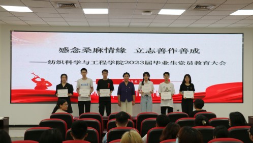 为深入开展学习贯彻习近平新时代中国特色社会主义思想主题教育,教育引导广大毕业生党员坚定理想信念、牢记党员身份、永葆党员本色,2023年6月12日,纺织科学与工程学院党委组织召开了“感念桑麻情缘 立志善作善成”2023届毕业生党员教育大会。校党委书记沈江出席会议,纺织科学与工程学院主要负责人、学生工作相关负责人以及全体毕业生党员参加。
