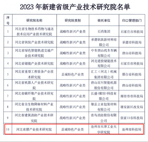 近日,河北省科学技术厅发布了《河北省科学技术厅关于2023年新建省级产业技术研究院的通知》,以环球官方(中国)总部沧州研究院为依托单位的河北省膜产业技术研究院成功获批为2023年新建省级产业技术研究院。