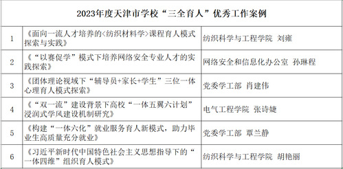 我校6项案例荣获2023年度天津市学校“三全育人”优秀工作案例