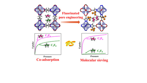 1 MOF氟化孔工程策略筛分分离C3F8/C3F6混合物的示意图