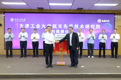 随后,航膜科技发展集团董事长梁峰和我校工业技术研究院院长王亮代表双方签署了合作协议。夏长亮院士与张长江董事长共同为研究院揭牌,双方领导共同见证了这一历史性时刻。