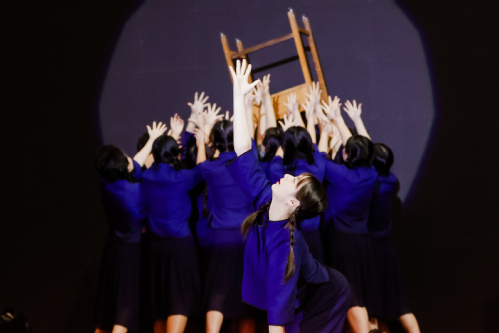 主题快闪《今天是你的生日》的参演者由学校科研人员、管理人员、辅导员、医务人员、消防人员、保卫人员、餐饮人员、物业人员代表,大中小学思政一体化共建学校的学生代表、纺织科学与工程学院学生合唱团、艺缘艺术团组成。当音乐响起,参演者们纷纷从观众席中站起来,唱着歌、挥着旗、手牵手、肩并肩地走向舞台中央,共同深情歌颂伟大祖国。党委学生工作部负责人说到:“编排节目前,我们特别邀请了共建单位的中小学生,他们的热情特别高涨。参演学生的家长们看着自己的孩子与大哥哥、大姐姐们同声歌唱祖国、祝福祖国,内心满是喜悦和自豪。这种‘手拉手’同上思政课的形式,在我们大中小学之间已经成为一种常态、一种习惯。”