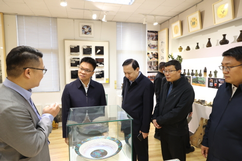 会前,在姜勇校长的陪同下,王志平区长一行先后参观了我校先进分离膜材料全国重点实验室、高性能纤维及纺织复合材料制备技术国家地方联合工程研究中心、陶胎漆器工作室,深入了解我校在科技创新、成果转化、中华优秀传统文化传承创新方面取得的显著成果。
