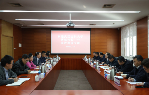 11月14日,武汉纺织大学校长傅欣一行来我校调研交流。校长姜勇出席,相关职能部门负责同志参加,座谈会由党委宣传部部长、战略发展研究中心主任刘玉靖主持。